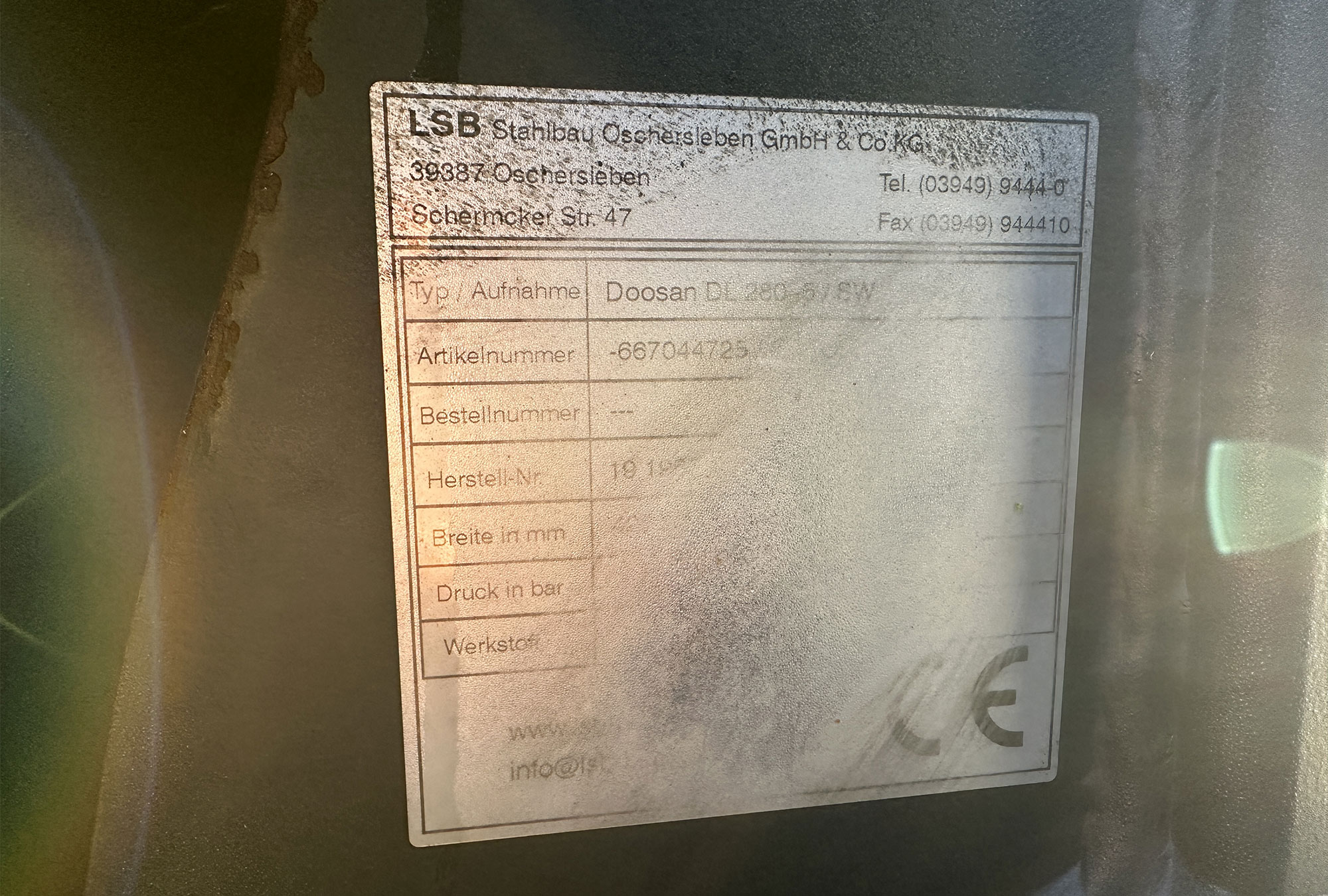 | Hours of machine service: | - |