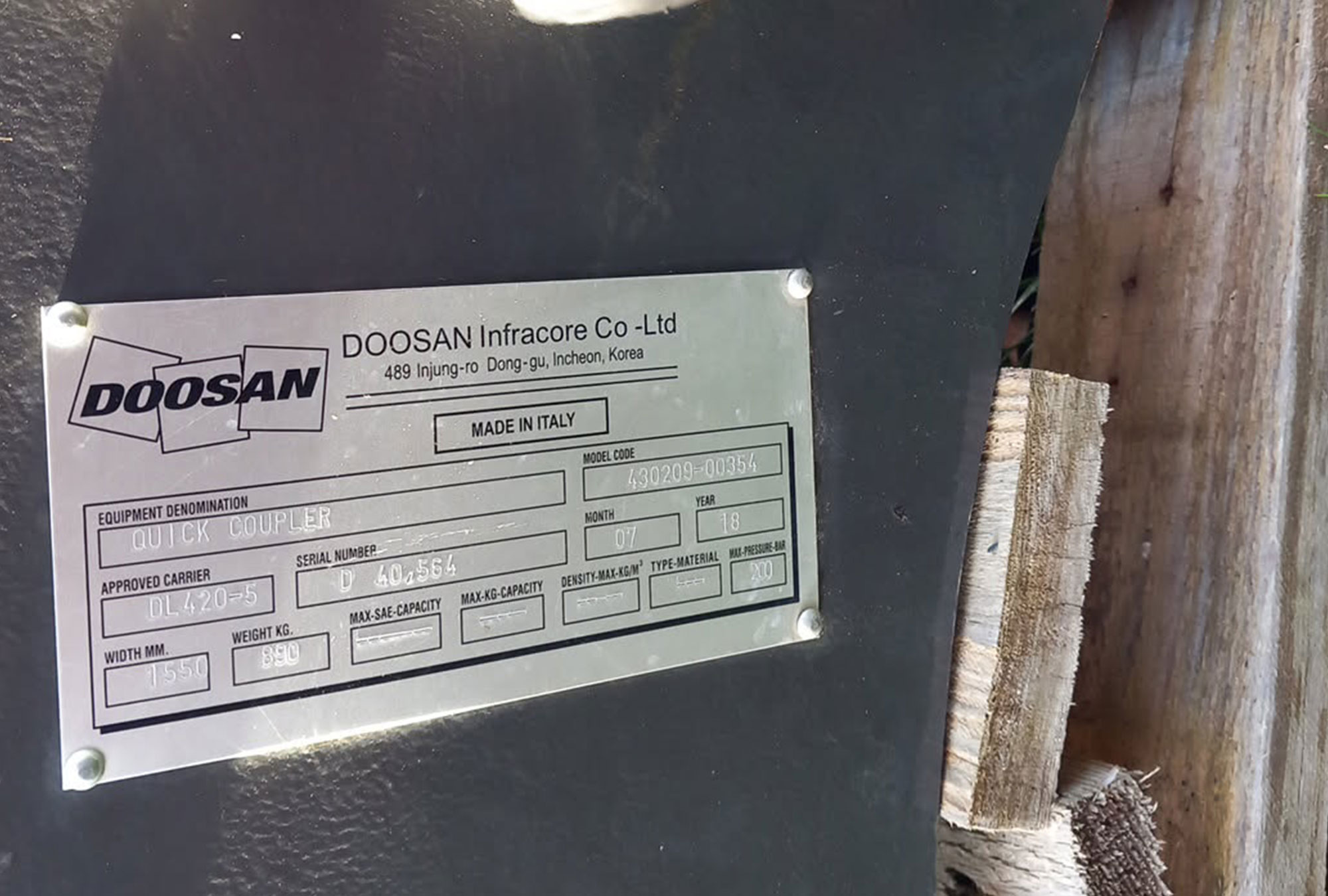 DL420-7/-5/-3 LARGE quick coupler